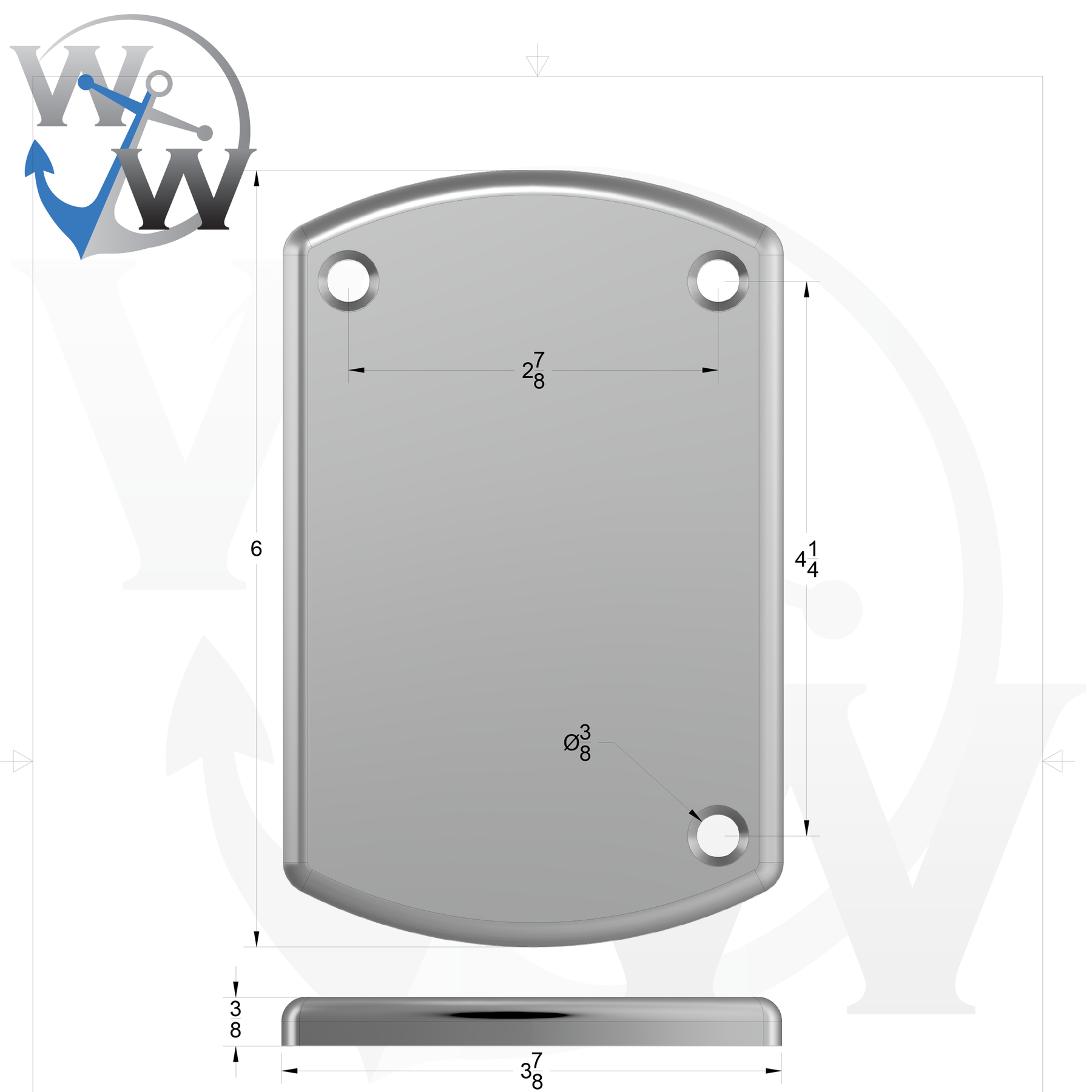 This versatile rectangular mounting pad is precision-engineered for secure marine rigging and hardware installation. Crafted from solid 3/8" thick 6061-T6 aluminum, it provides a robust, corrosion-resistant backing surface for gunwales, decks, or custom fabrication projects.