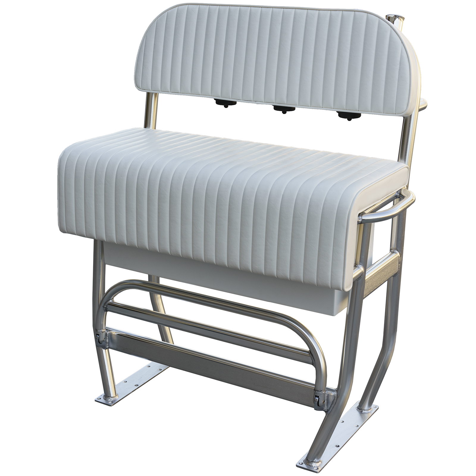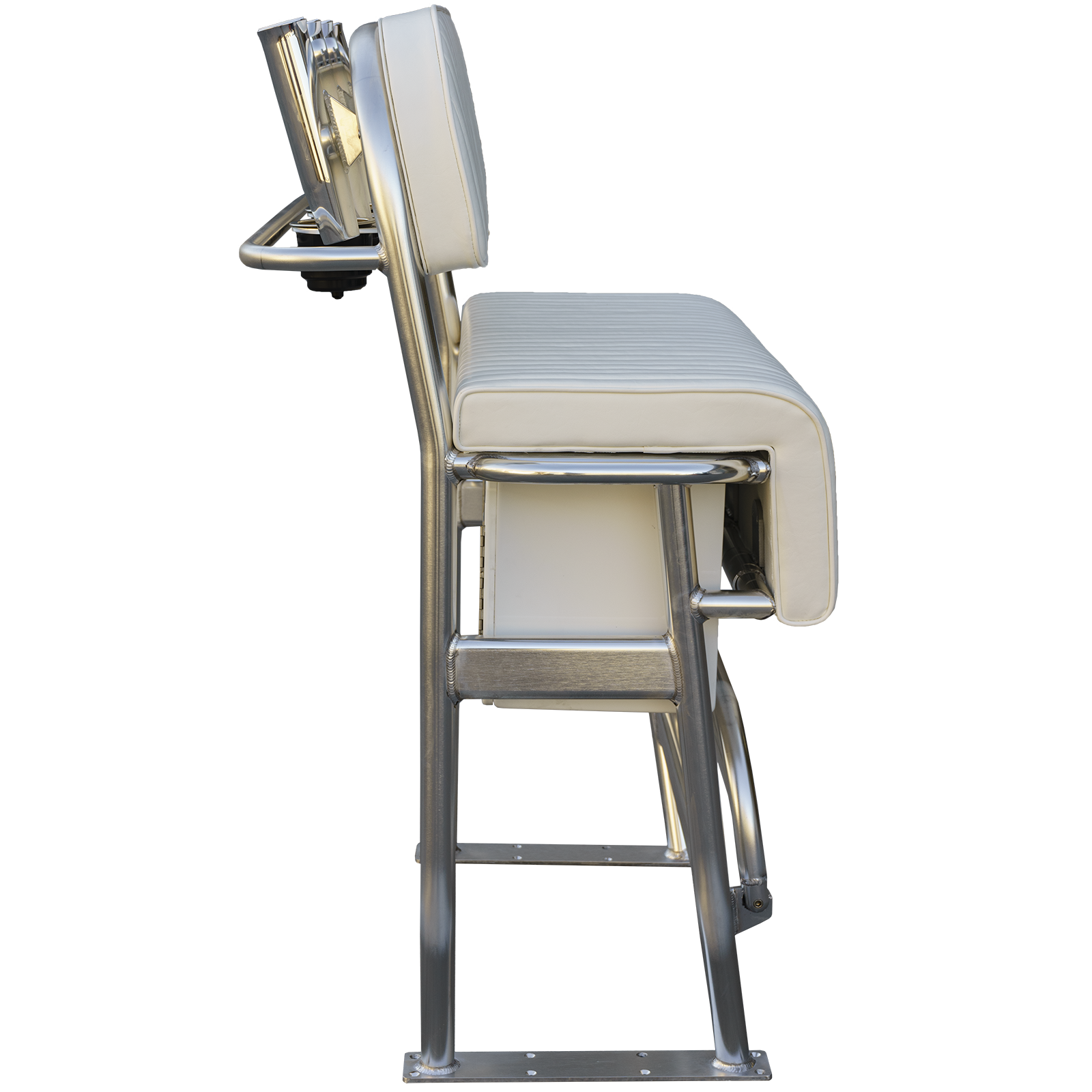 - Bright finish marine spec Anodized 1 - 1/2 inch diameter, schedule 40 TIG fillet welded 6061-T6 series aluminum structure that guarantees strength and durability as all structural parts in our seats are welded, never screwed nor bolted together for unequaled reliability in tough angling situations.