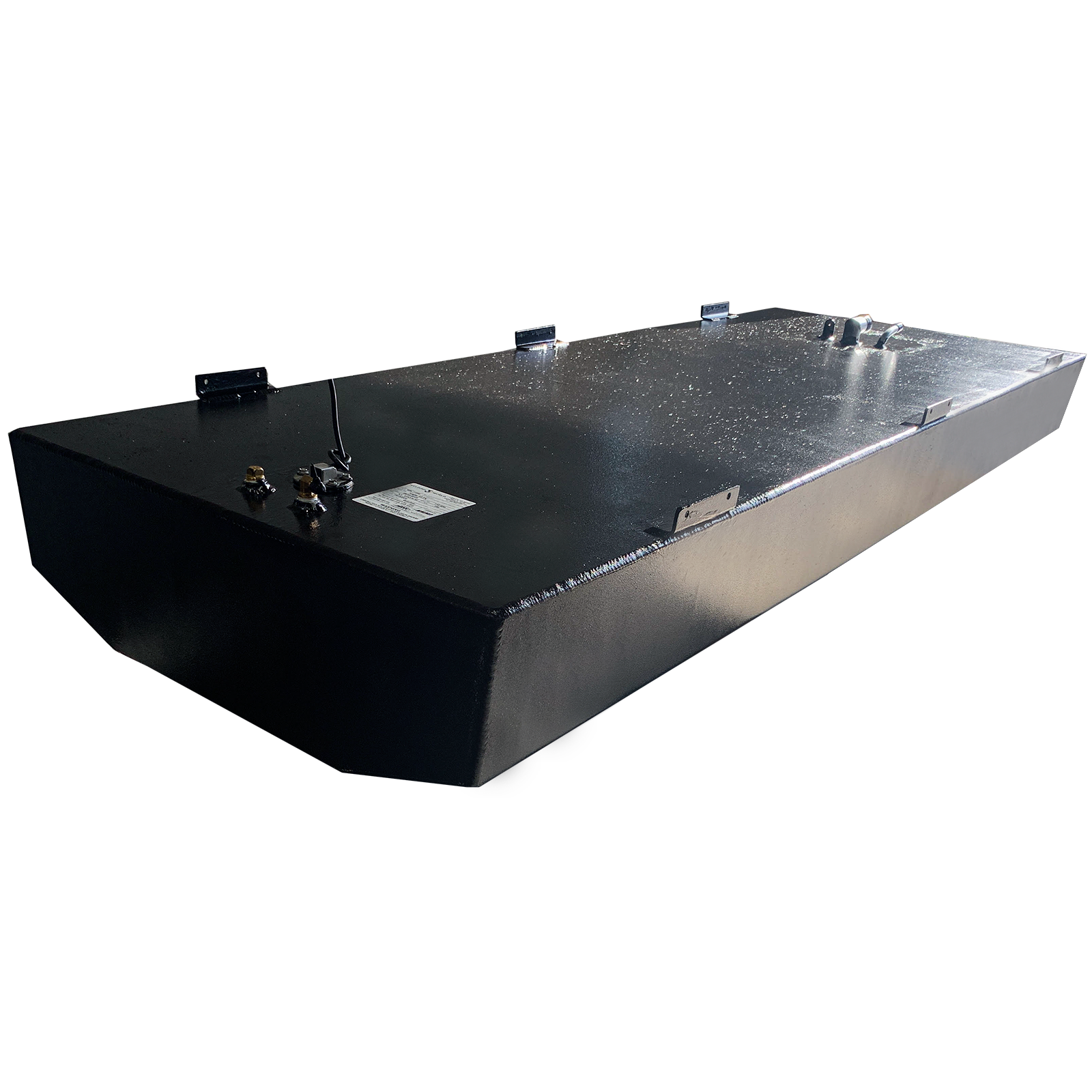 OEM replacement belly fuel tank for Angler 22 FX, featuring a sleek black surface with fuel fittings and a smooth design, suitable for 110-gallon capacity