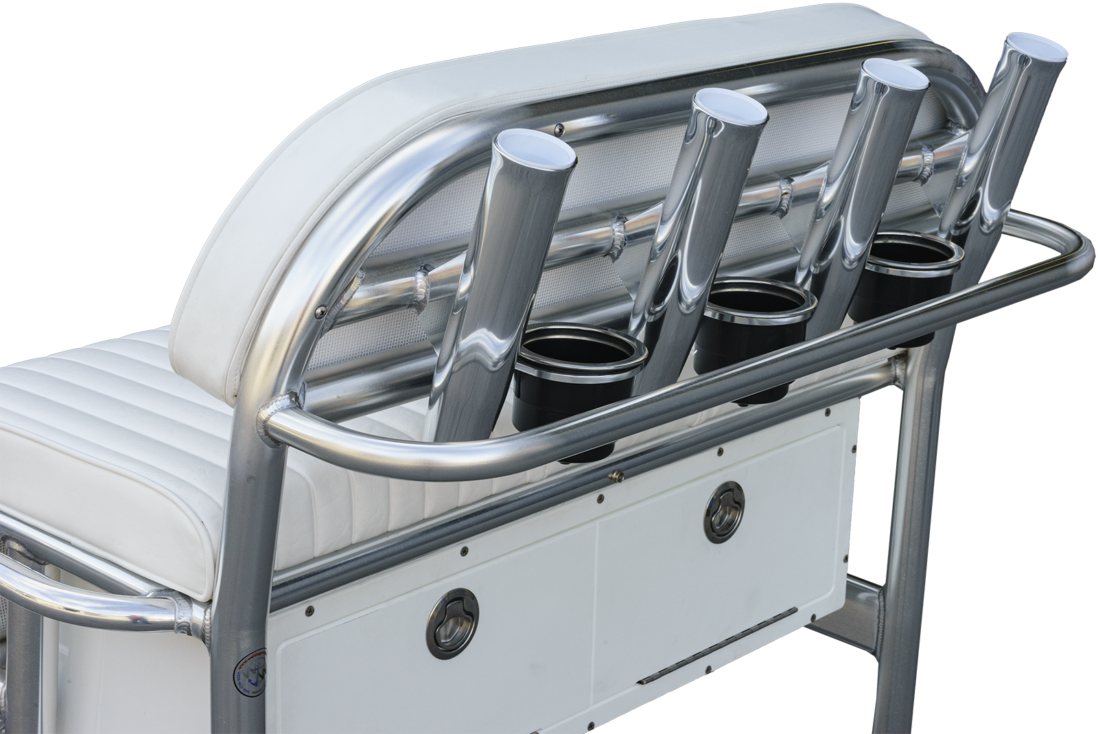 - 4 large rod holders and 3 large and deep deluxe polished cup holders.