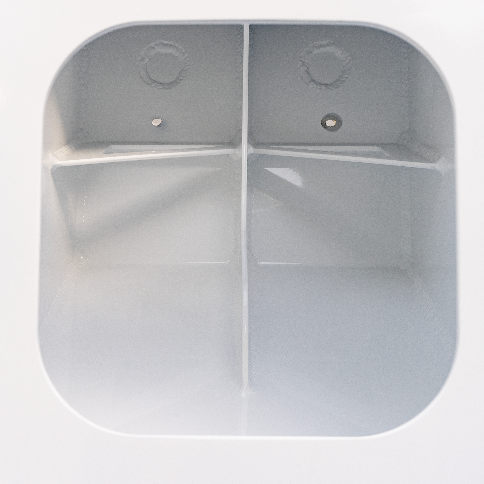 • All-aluminum construction using 0.250 thick cold-formed Alcoa 5052 H32 series sheets and schedule 40 6061-T6 series aluminum tubing for our standard rounded wrap-around edge design.