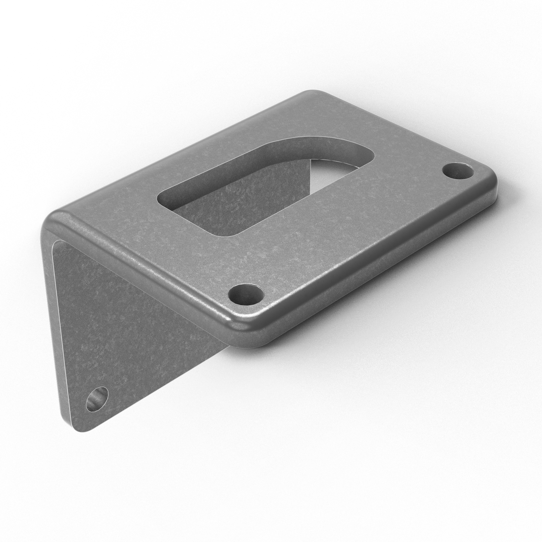 The right pad to install your D-3 size D-pipe to pedestals or any other structure that requires angled attachment. 90º bend. Use plastic grommets on its straight (not countersunk) screw holes. Discrete 3/16" fillet. Left-hand side.