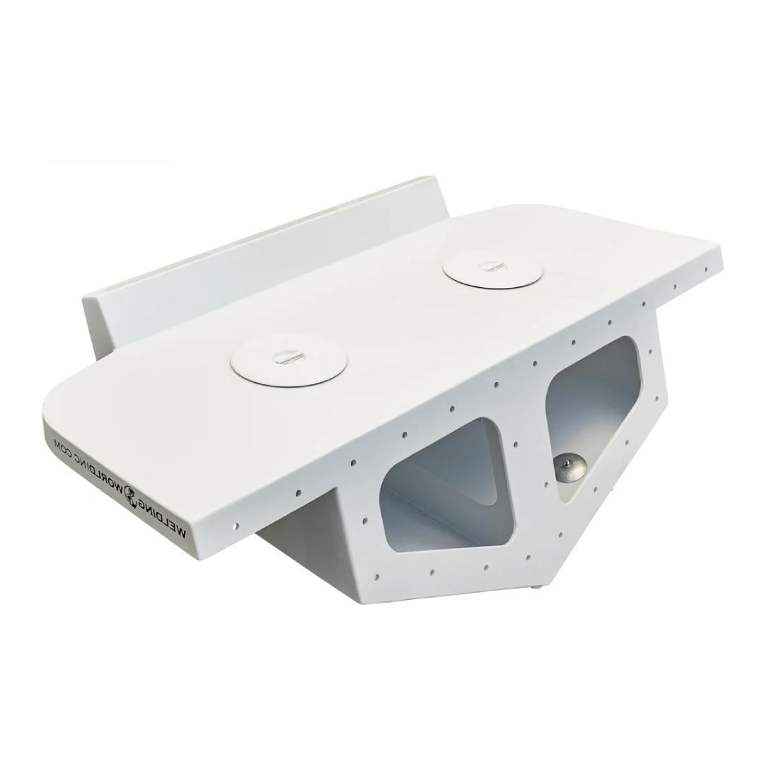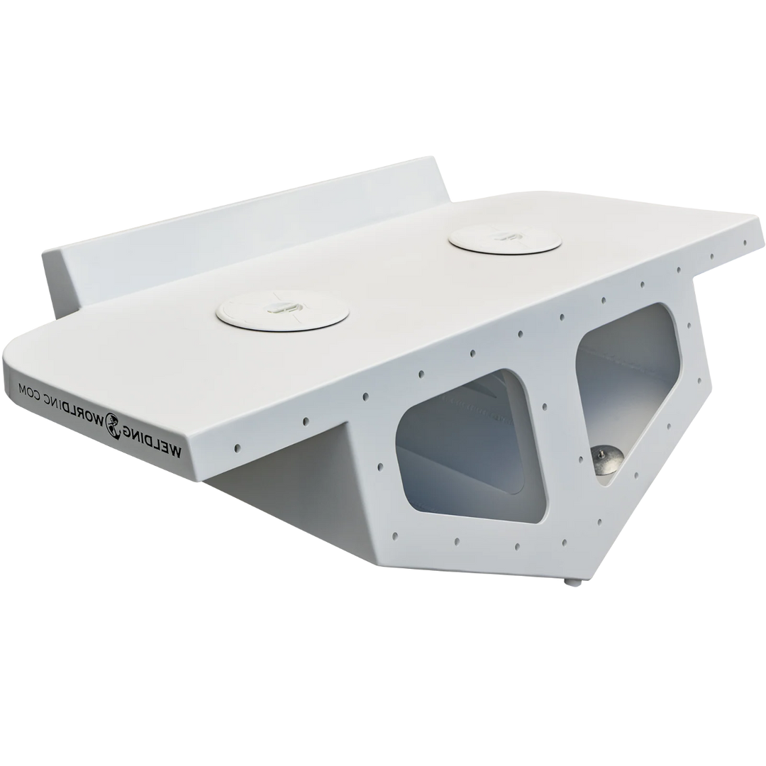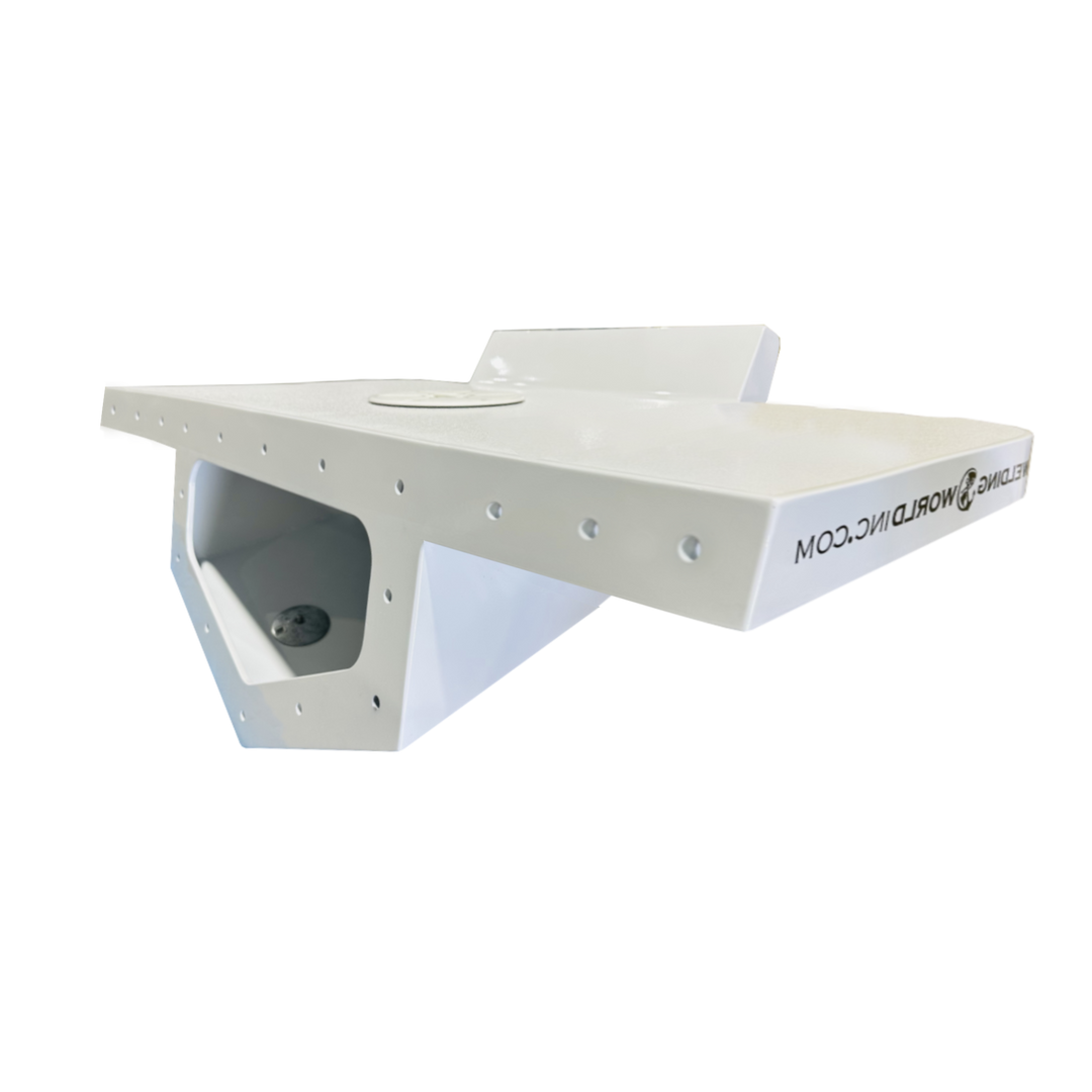 A white outboard engine bracket floating on the turquoise ocean with waves and white foam