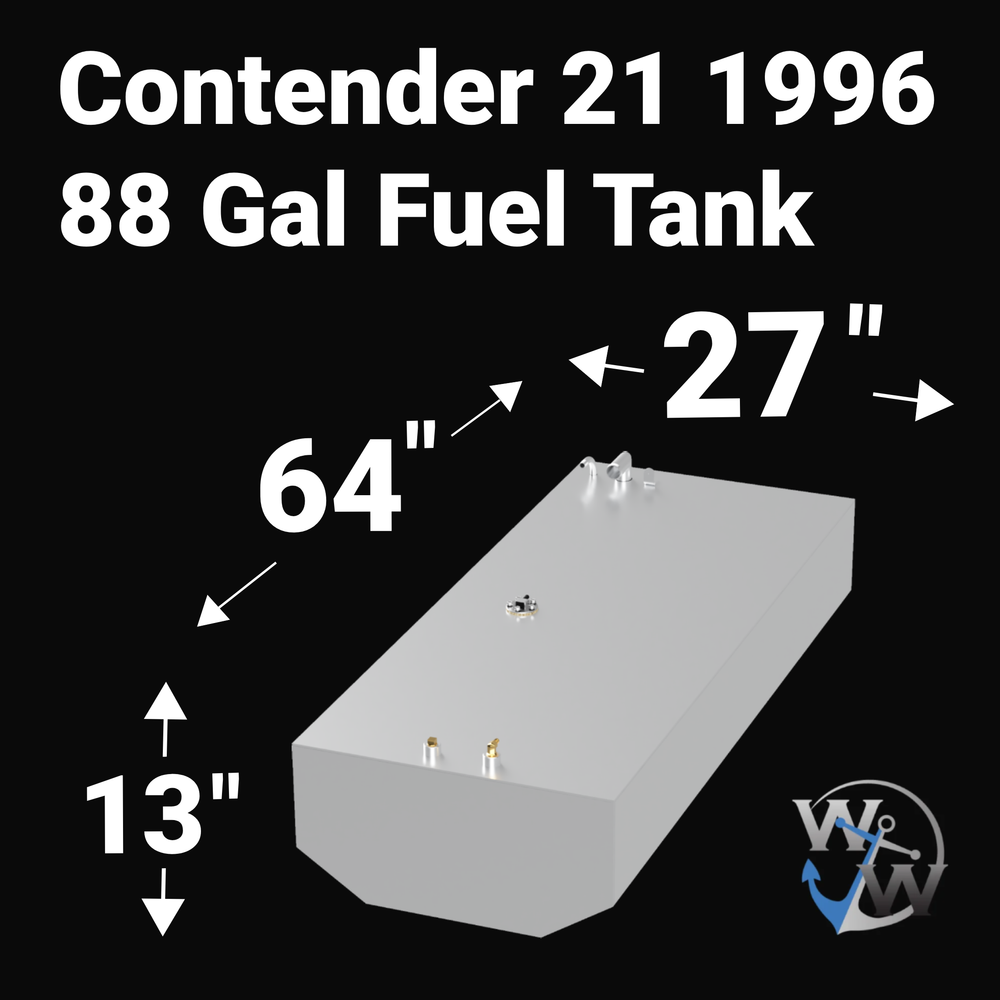 An aerial view of four black OEM replacement fuel tanks floating on the ocean, surrounded by turquoise water with white foam.