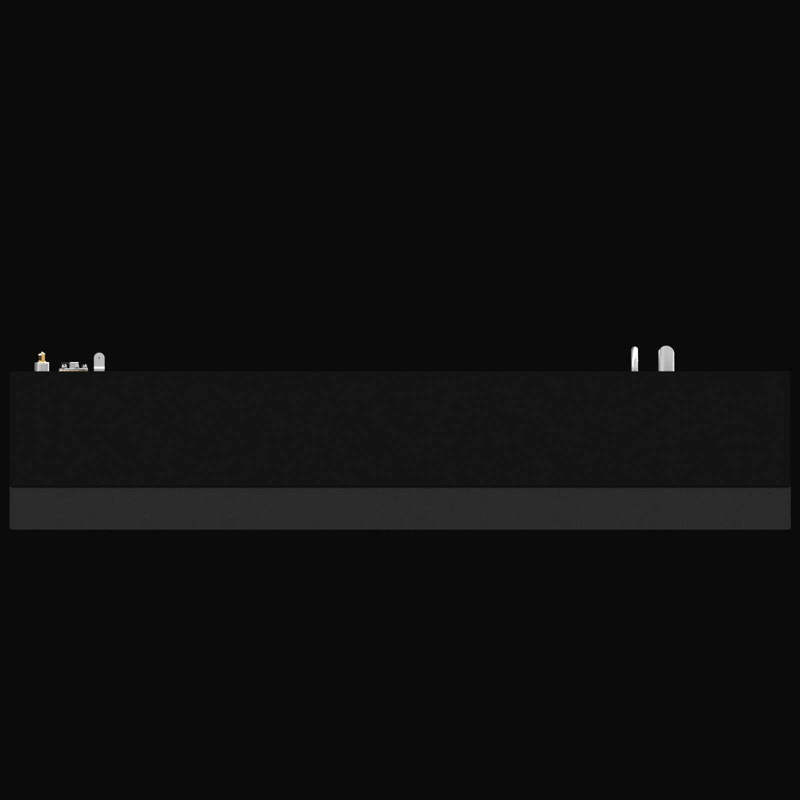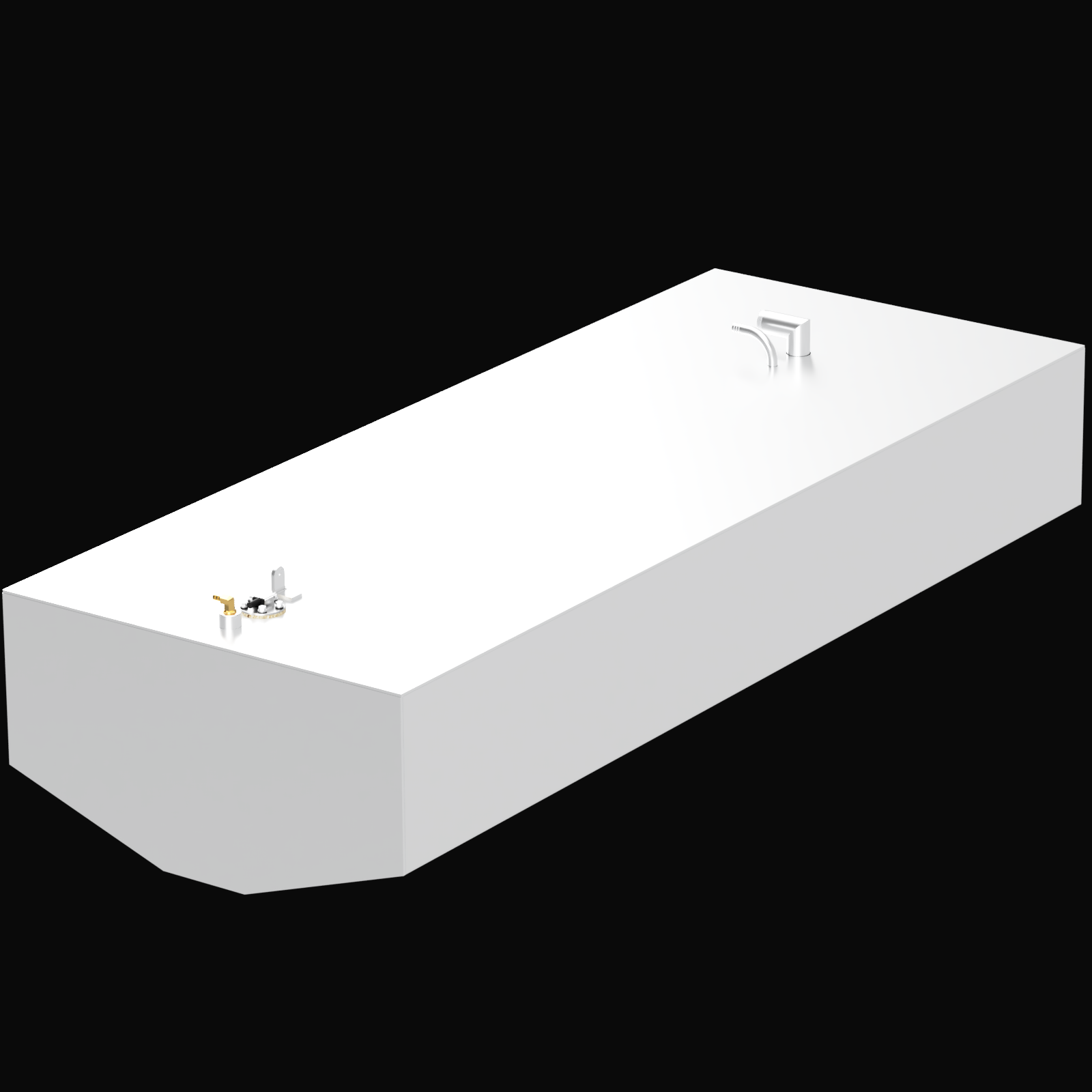 A rectangular, black fuel tank with a small silver vent or fitting on top, and a control panel with gauges and switches on the front side. The tank is set against a black background